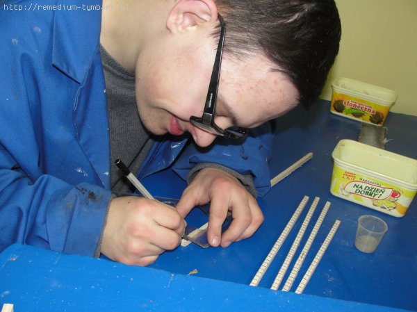 Rozwijanie wyobraźni oraz poczucia smaku i estetyki poprzez zdobienie przedmiotów drewnianych – bejcowanie, lakierowanie, wypalanie wzorów, wyklejanie elementami ze szkła, oklejanie fornirem i laminatem oraz tworzenie elementów scenografii do spektakli teatralnych