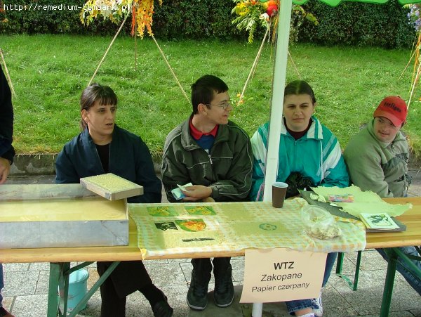 Osoby niepełnosprawne pokazały warsztaty koronkarskie (Nowy Sącz), metaloplastyczny (Brzesko), witrażowy (Rymanów), wikliniarski (Stara Wieś k/Brzozowa), papierniczy - uzyskiwanie papieru czerpanego (Zakopane) oraz ceramiczny i tkacki (Limanowa).