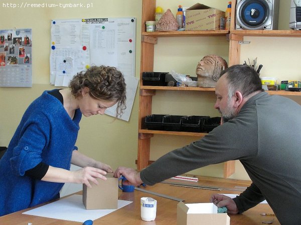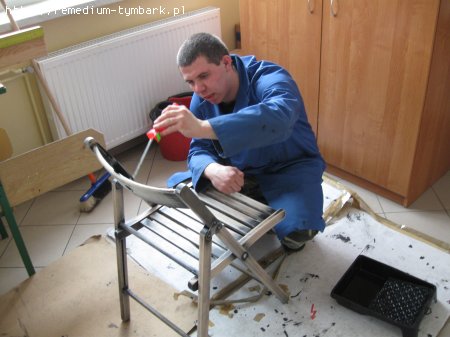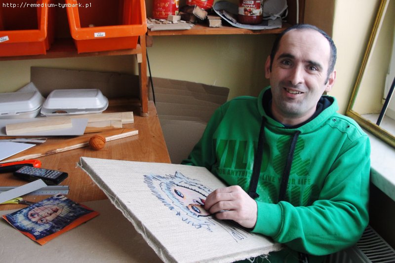 W tej pracowni oprawiamy wykonane w WTZ obrazy. Sami odnawiamy też i konserwujemy używane sprzęty, dbamy o porządek wokół budynku.