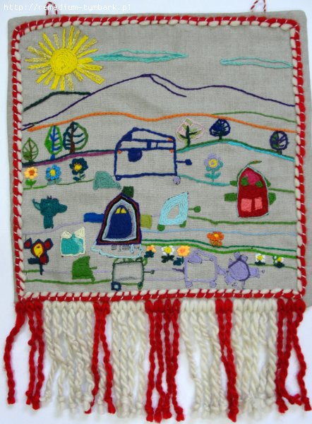 Barwne kilimy i gobeliny tkamy na krosnach i ramkach.